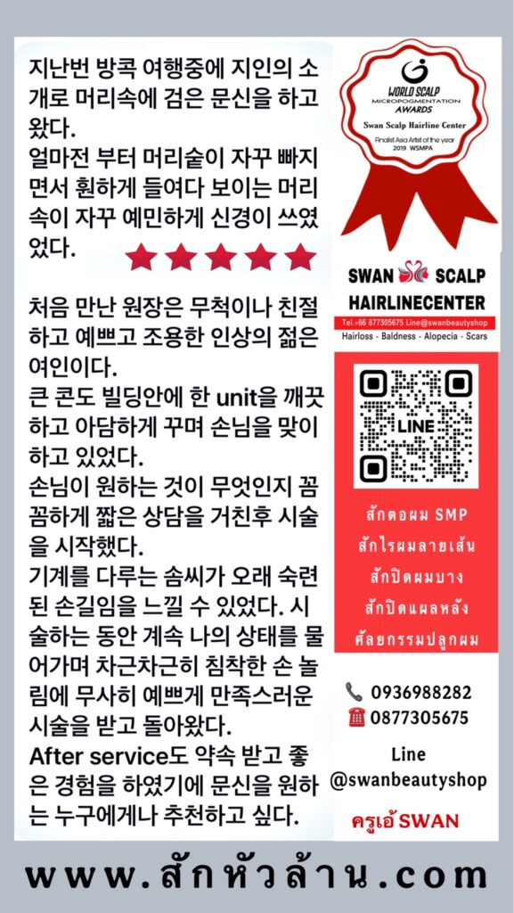 สถาบันสอนและออกแบบการสักไรผม สักปิดหัวล้าน สักสกินเฮด และสักปิดรอยแผล ที่ได้รับรางวัลบุคคลต้นแบบ และรางวัล The Finalist Asia Artiste of the year Award 2019 จากองค์กรระดับโลก Scalp World Florida ประเทศสหรัฐอเมริกา USA